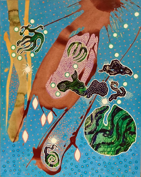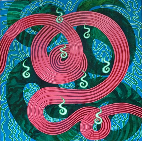 The following series of paintings investigate Buddhist ideas of the Five Elements as a portal into concepts of landscape and resulted in five bodies of work responding to the genius loci of landscapes as diverse as Lake Mungo, Kakadu, Mystery Bay, Central Western Desert and the Glasshouse Mountains.