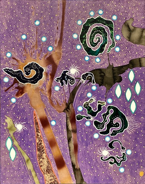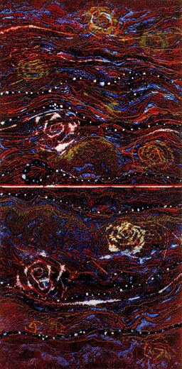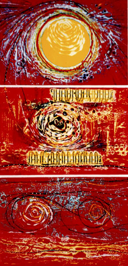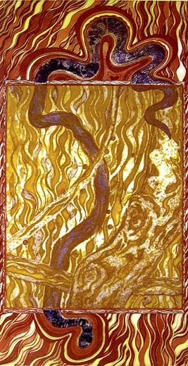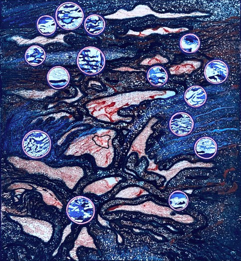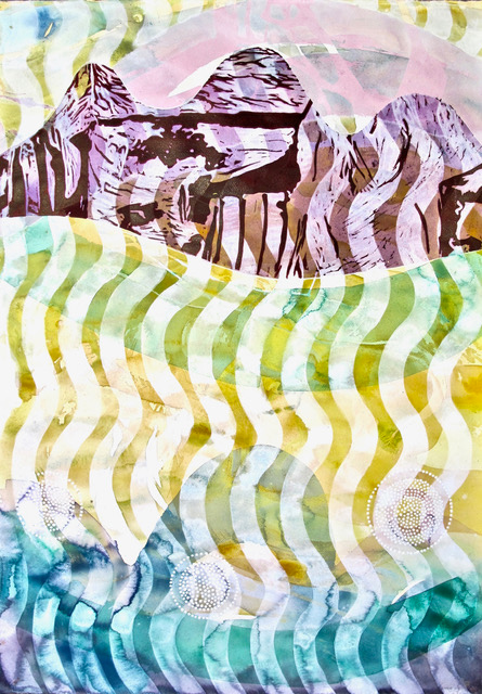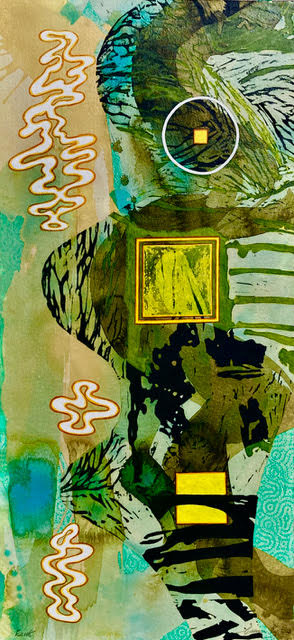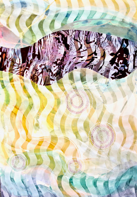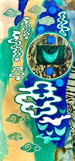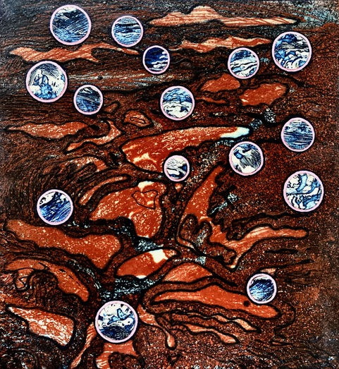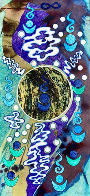 Mixed Media combines etching and lino-printing on laminated Japanese and Chinese papers, bringing forth the underlying principals of layering, shifting metaphor and transmutation.